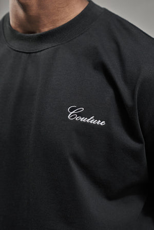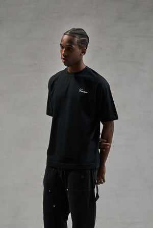 SCRIPT EMBROIDERED T-SHIRT - BLACK