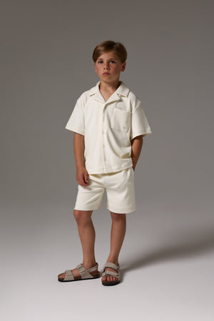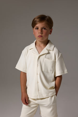 JUNIOR RIB BUTTON THROUGH SHIRT - STONE