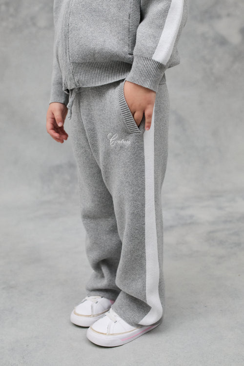 KIDS SIDE STRIPE KNITTED JOGGERS - GREY MARL