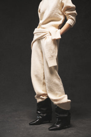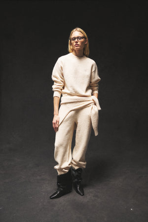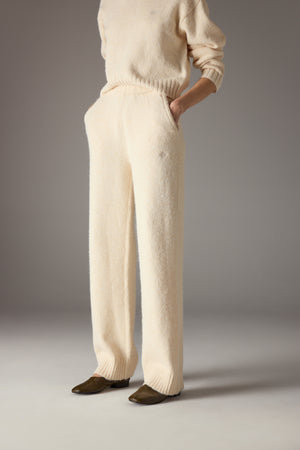 EMBLEM EMBROIDERED KNIT JOGGERS - BUTTERMILK