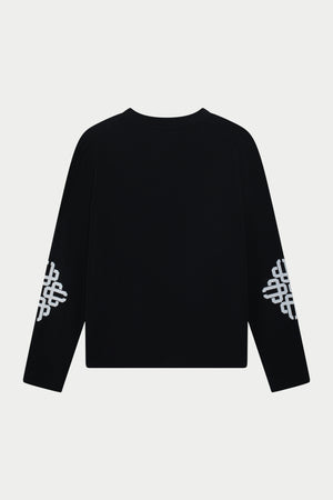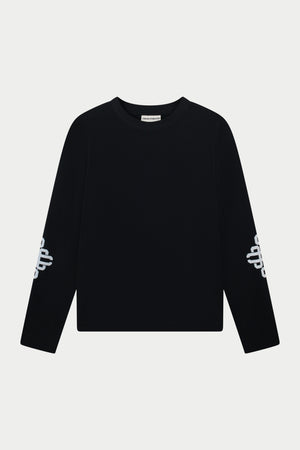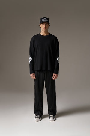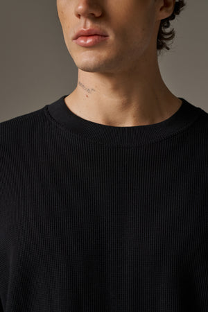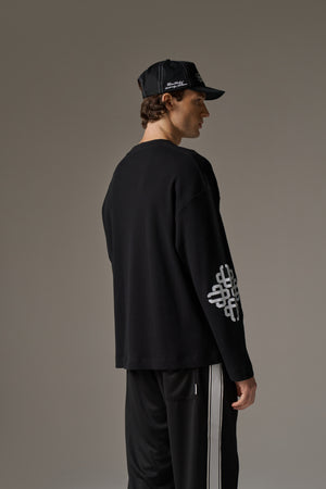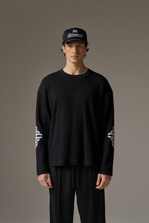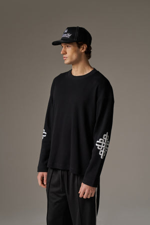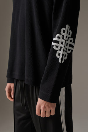 EMBLEM WAFFLE LONG SLEEVE T-SHIRT - BLACK