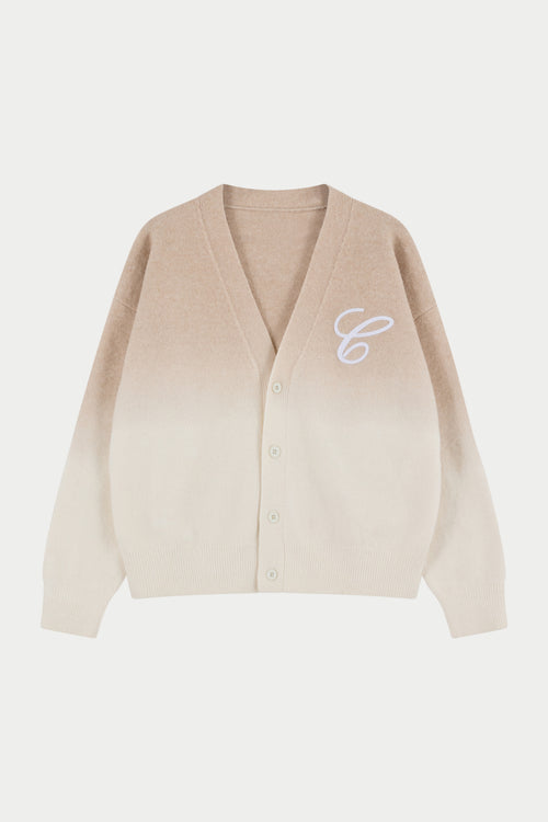 OMBRE KNITTED EMBROIDERY CARDIGAN - BEIGE