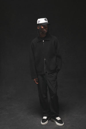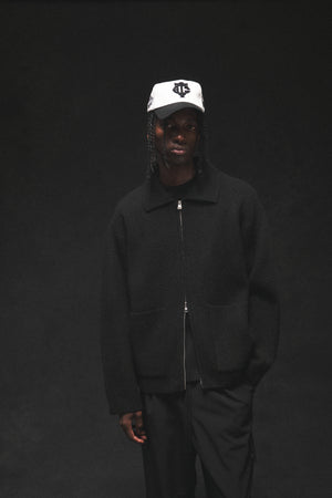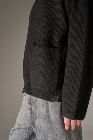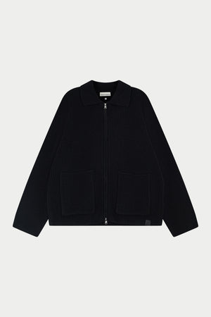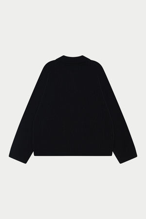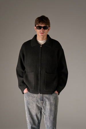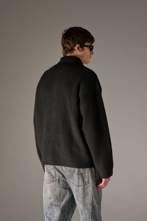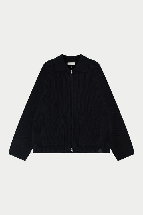 RIBBED KNITTED OVERSIZED ZIP THROUGH - BLACK