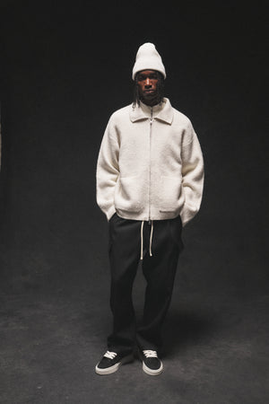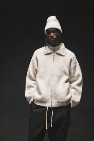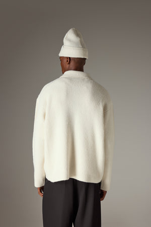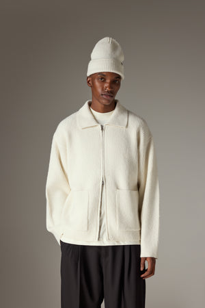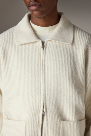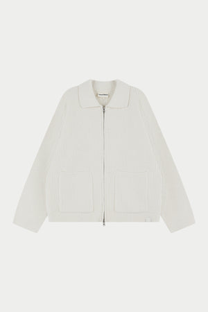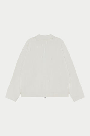 RIBBED KNITTED OVERSIZED ZIP THROUGH - WHITE