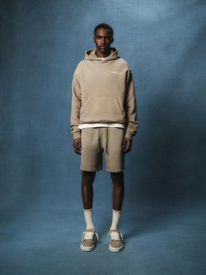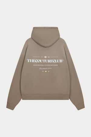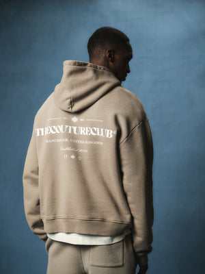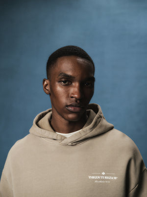 SPRAY WASH COPYRIGHT MULTI GRAPHIC HOODIE - BEIGE
