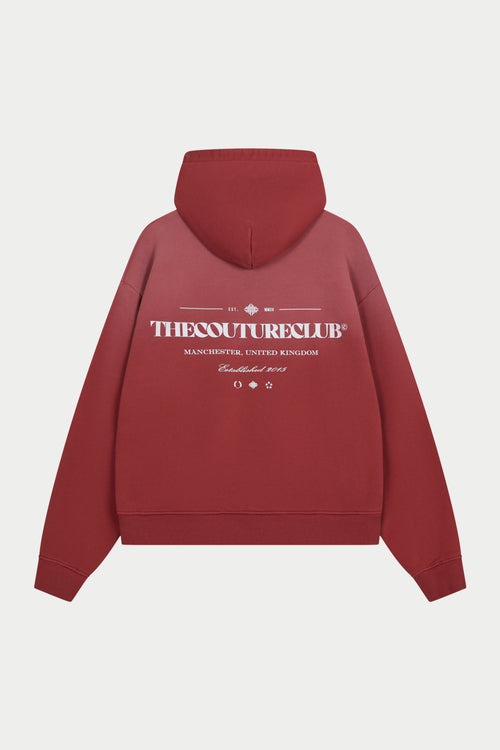 SPRAY WASH COPYRIGHT MULTI GRAPHIC HOODIE - RED