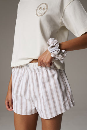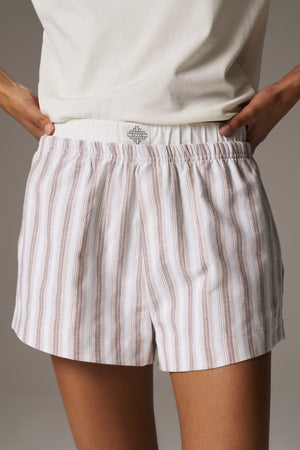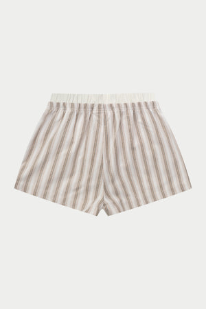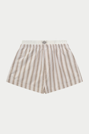 STRIPE BOXER WAISTBAND WOVEN SHORTS - BEIGE