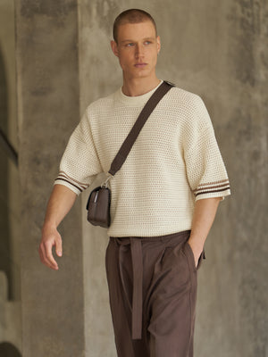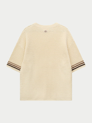 STRIPE CROCHET KNIT T-SHIRT