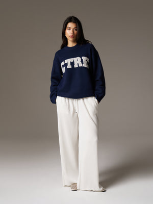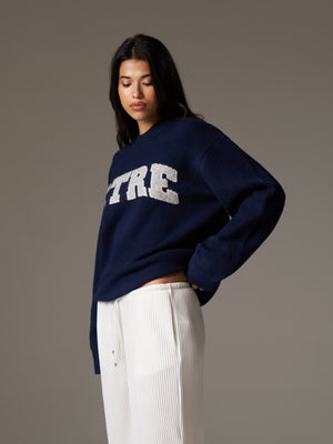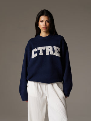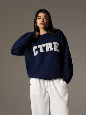 FLUFFY KNIT EMBLEM EMBROIDERED CREW