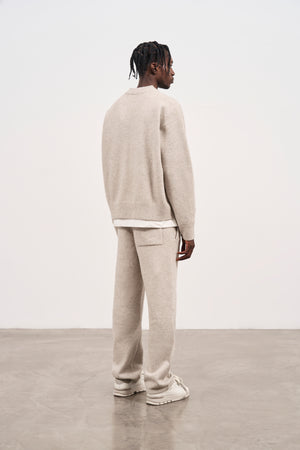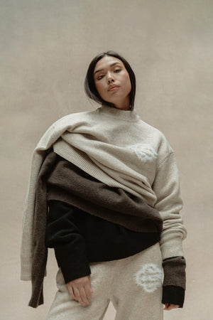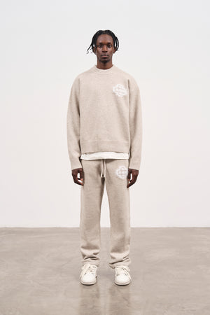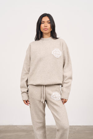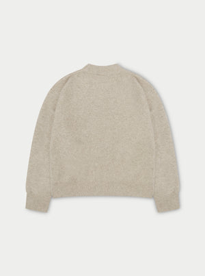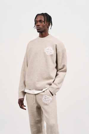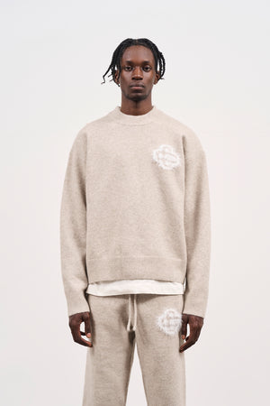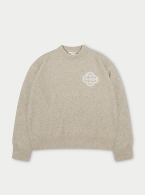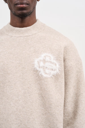 FLUFFY EMBLEM KNITTED CREW - BEIGE