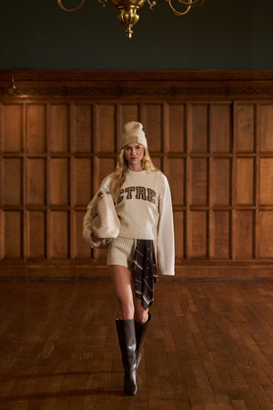- Contrast knitted intarsia branding sitting centrally on front