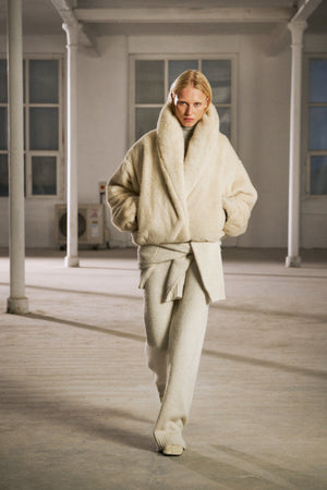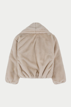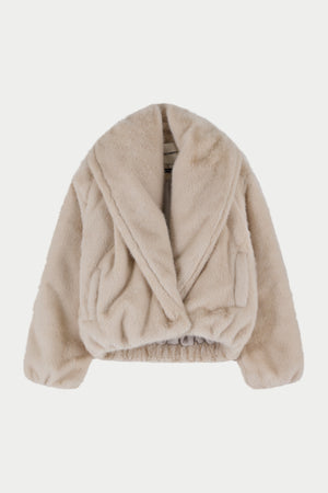 OVERSIZED COLLAR FAUX FUR PUFFER COAT - CREAM