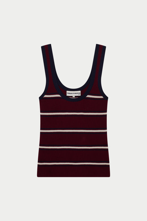 STRIPE RIBBED VEST TOP - BURGUNDY