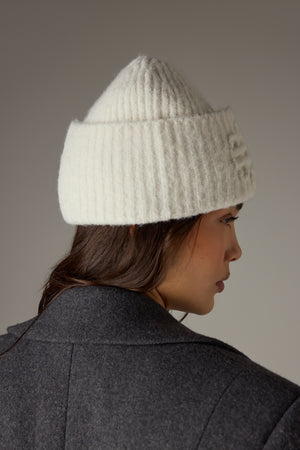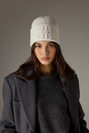 EMBLEM KNITTED BEANIE - OFF WHITE