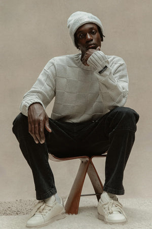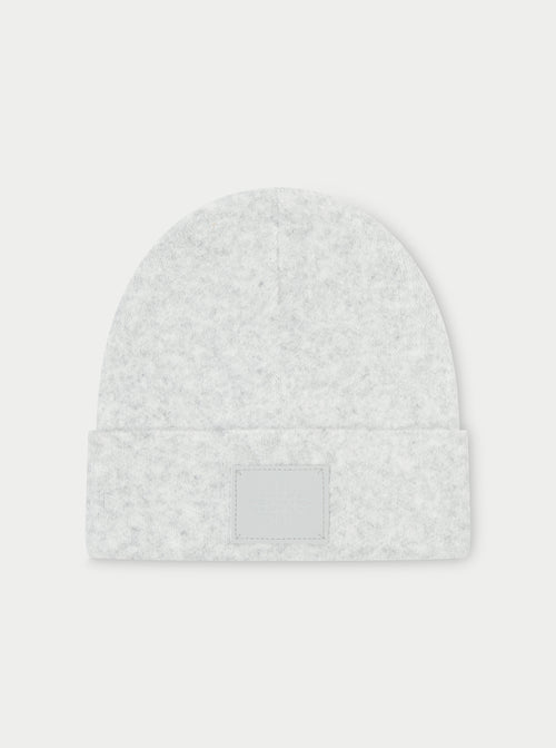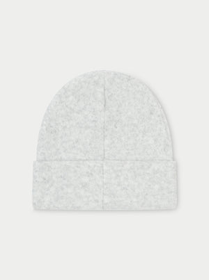 FLUFFY KNIT EMBLEM BEANIE - GREY MARL