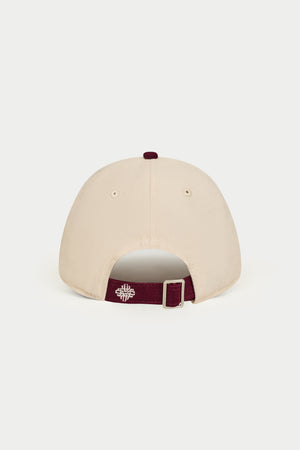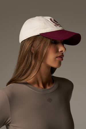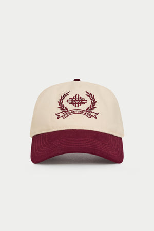 TWO TONE EMBROIDERY CREST CAP - BURGUNDY