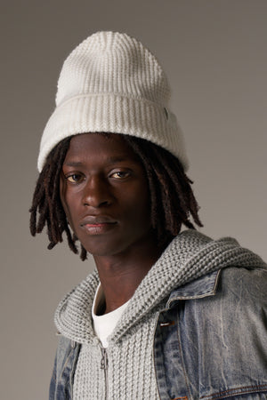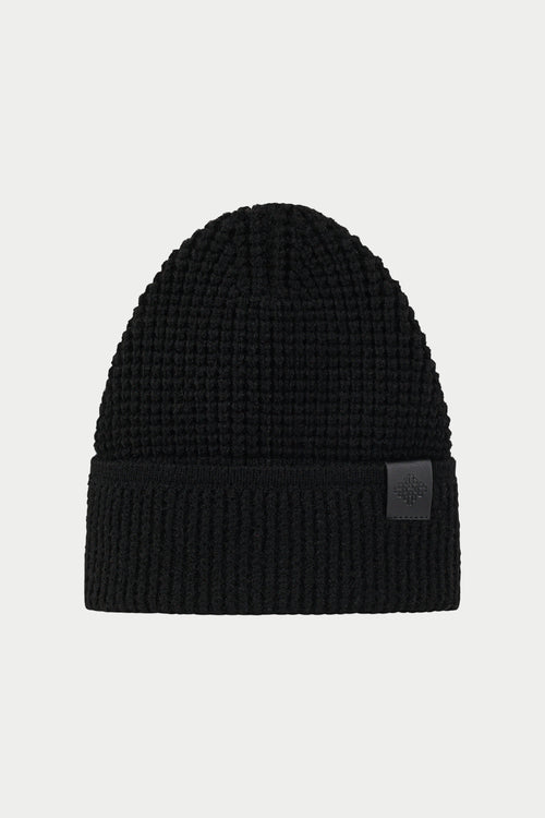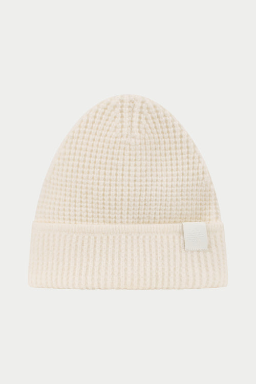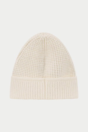 WAFFLE KNIT EMBLEM BEANIE - WHITE