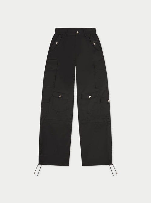 OVERSIZED TIE HEM CARGO PANTS - BLACK