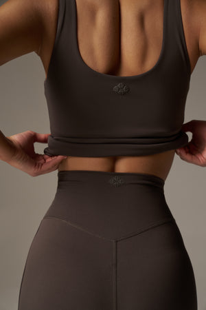 SCULPTING STRETCH CROSSOVER WAISTBAND LEGGINGS - CHOCOLATE