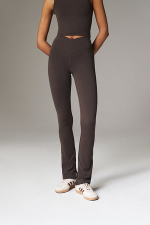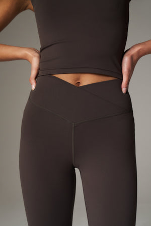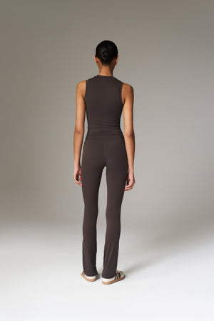 SCULPTING STRETCH ZIP HEM LEGGINGS - CHOCOLATE