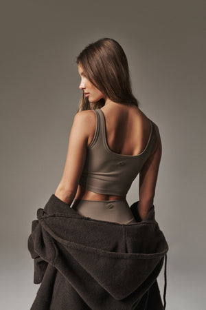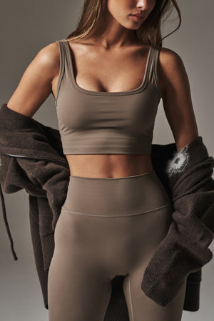 SCULPTING STRETCH EMBLEM SPORTS BRA - COCOA