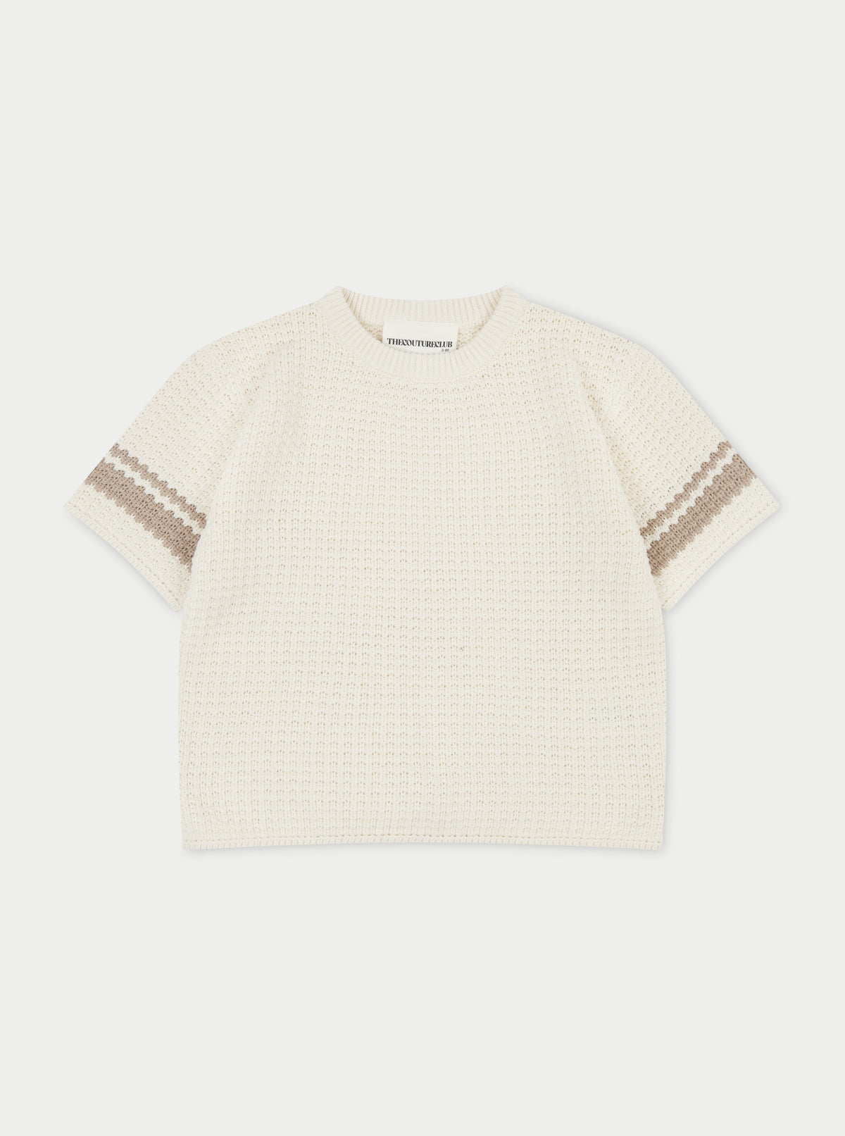 KIDS CROCHET KNITTED CONTRAST STRIPE T-SHIRT - OFF WHITE