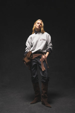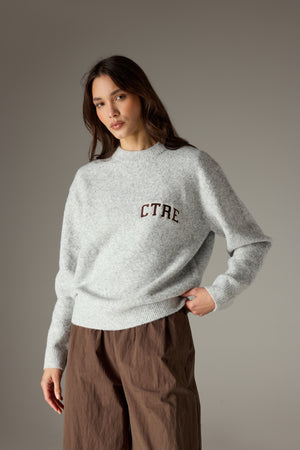 CTRE EMBROIDERED KNIT CREW - GREY MARL