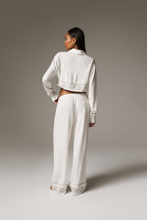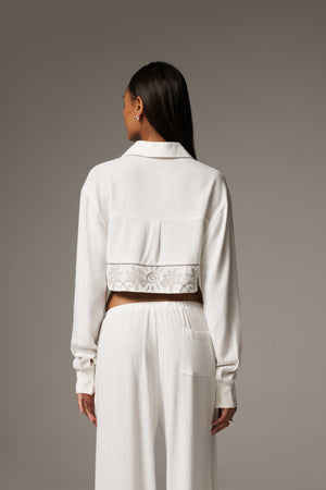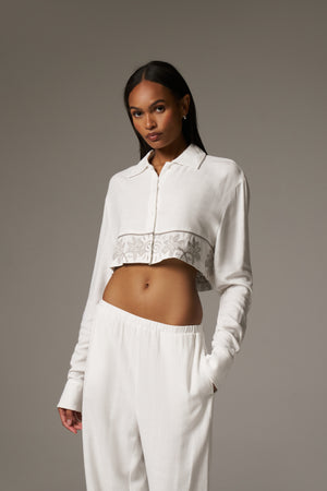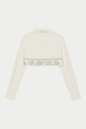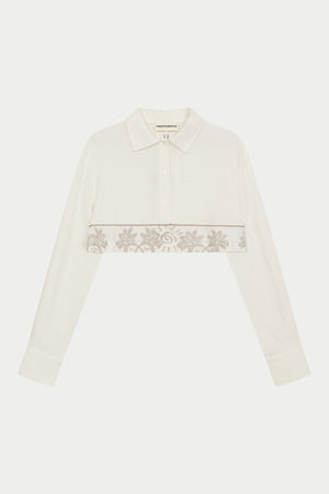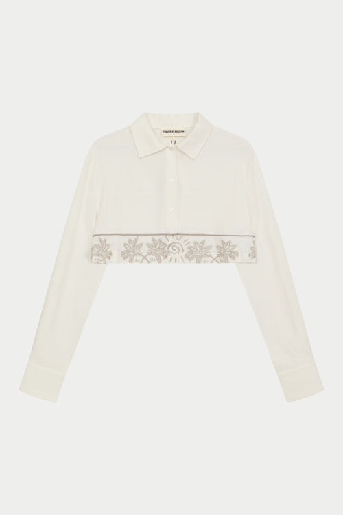 PALM EMBROIDERED CROPPED SHIRT - OFF WHITE
