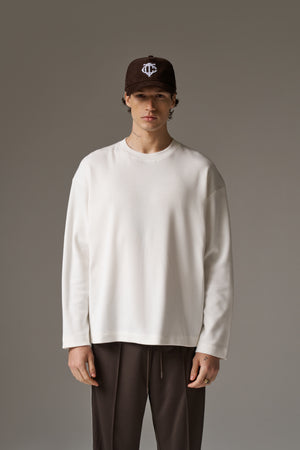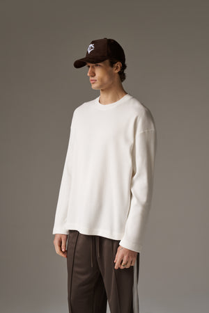 WAFFLE LONG SLEEVE T-SHIRT - OFF WHITE