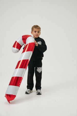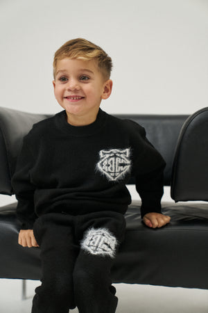 JUNIOR MONOGRAM EMBLEM FLUFFY KNIT JOGGERS - BLACK