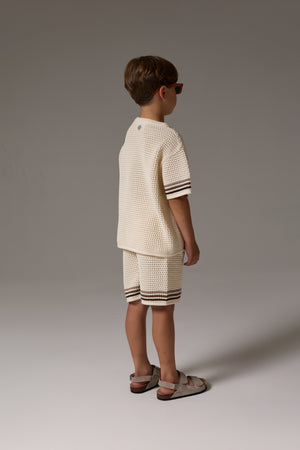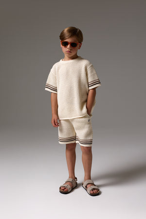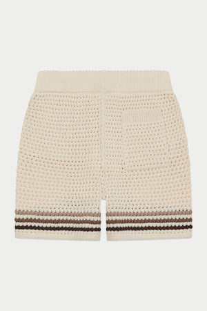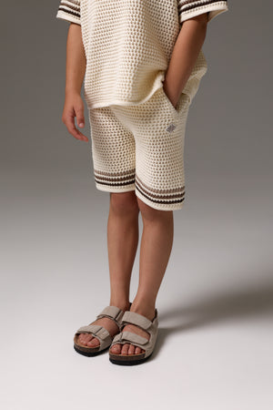 JUNIOR STRIPE CROCHET KNIT SHORTS - OFF WHITE