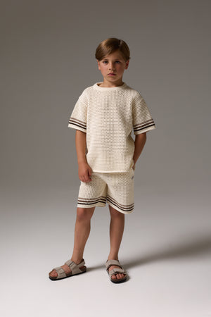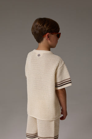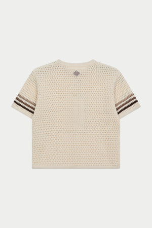 JUNIOR STRIPE CROCHET KNIT T-SHIRT - OFF WHITE