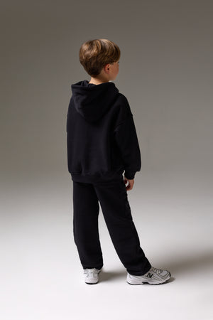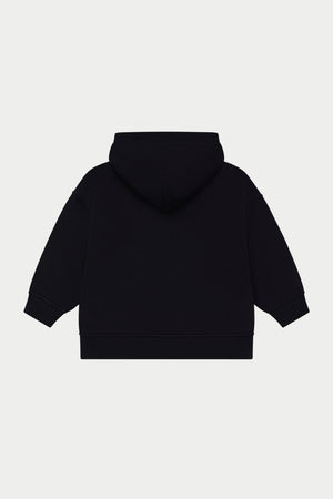 JUNIOR ZIP THROUGH MONOGRAM EMBLEM APPLIQUE HOODIE - BLACK