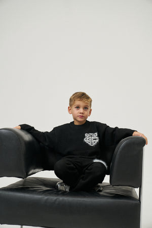 JUNIOR MONOGRAM FLUFFY KNIT CREW - BLACK