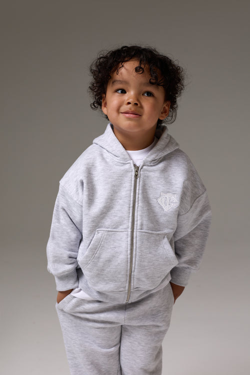 KIDS ZIP THROUGH MONOGRAM EMBLEM APPLIQUE HOODIE
