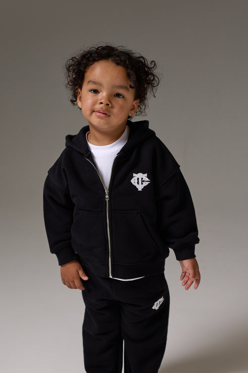 KIDS ZIP THROUGH MONOGRAM EMBLEM APPLIQUE HOODIE - BLACK