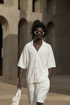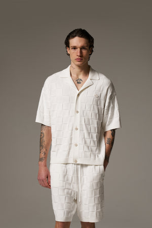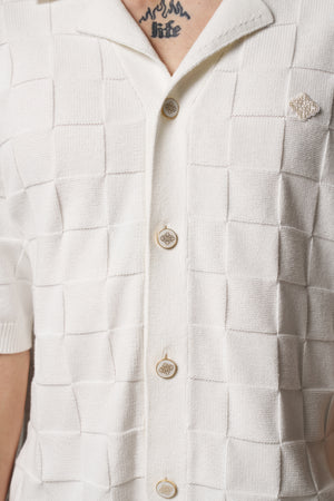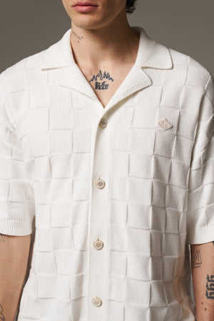 CHECKERBOARD KNITTED SHIRT - OFF WHITE