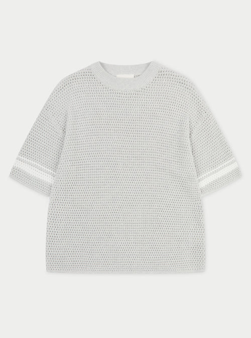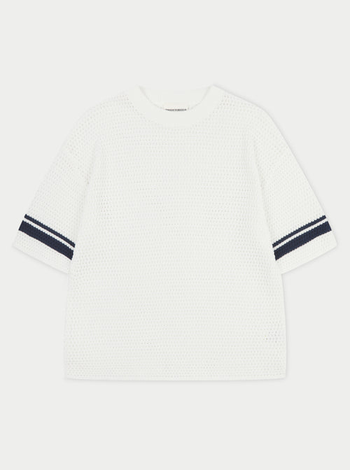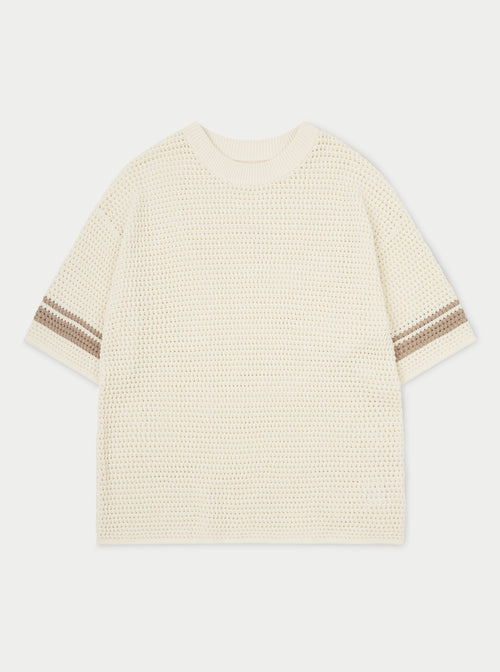 CROCHET KNITTED CONTRAST STRIPE T-SHIRT