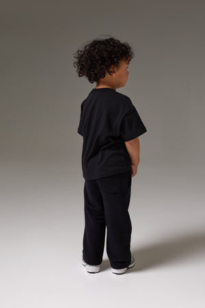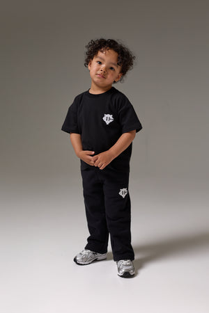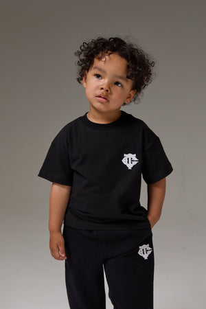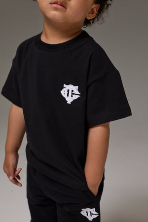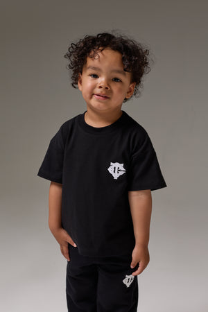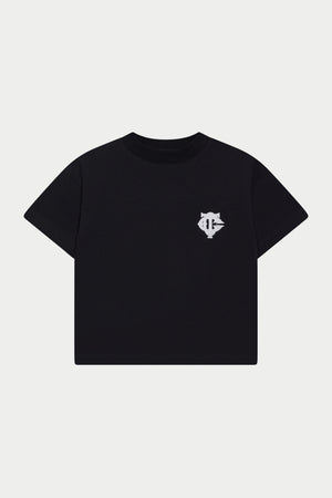 KIDS MONOGRAM EMBLEM APPLIQUE T-SHIRT - BLACK