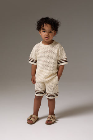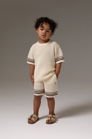 KIDS STRIPE CROCHET KNIT SHORTS - OFF WHITE