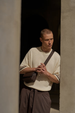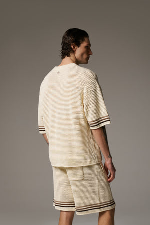 STRIPE CROCHET KNIT T-SHIRT - OFF WHITE