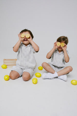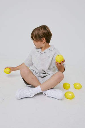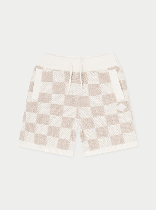 KIDS KNITTED CHECKERBOARD SHORTS - GREY