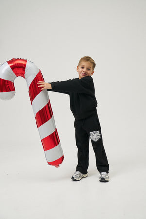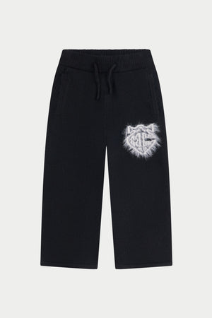KIDS MONOGRAM EMBLEM FLUFFY KNIT JOGGERS - BLACK