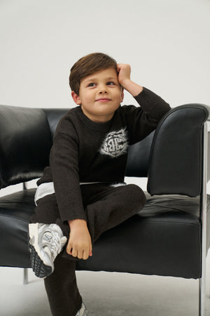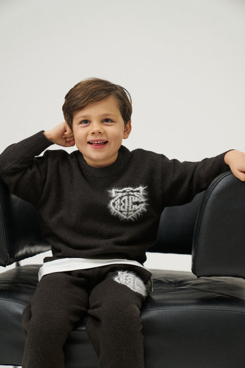 KIDS MONOGRAM FLUFFY KNIT CREW