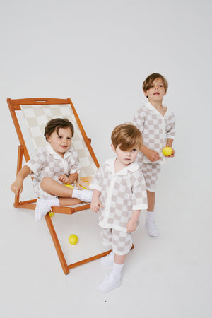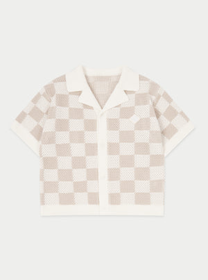KIDS KNITTED CHECKERBOARD SHIRT - OFF WHITE