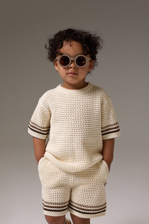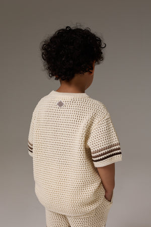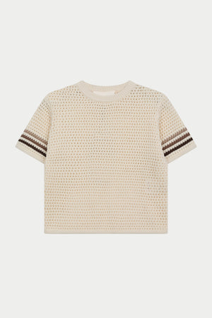 KIDS STRIPE CROCHET KNIT T-SHIRT - OFF WHITE