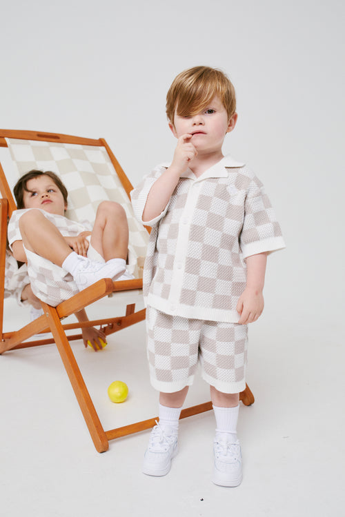 KIDS KNITTED CHECKERBOARD SHORTS - GREY