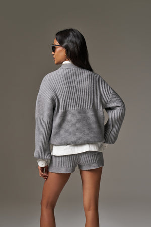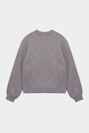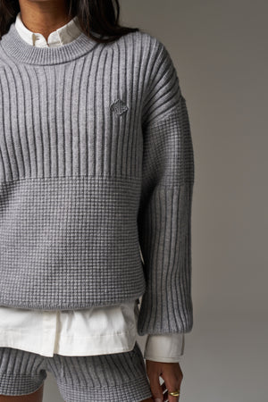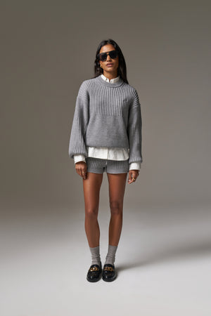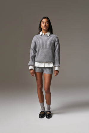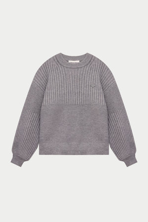 CONTRAST KNIT OVERSIZED CREW - GREY MARL