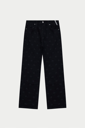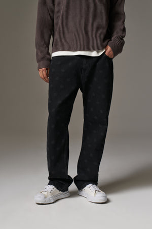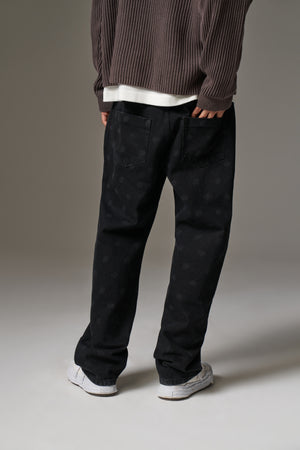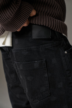 LASER PRINT EMBLEM JEANS - BLACK WASH
