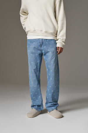 LASER PRINT EMBLEM JEANS - BLUE WASH
